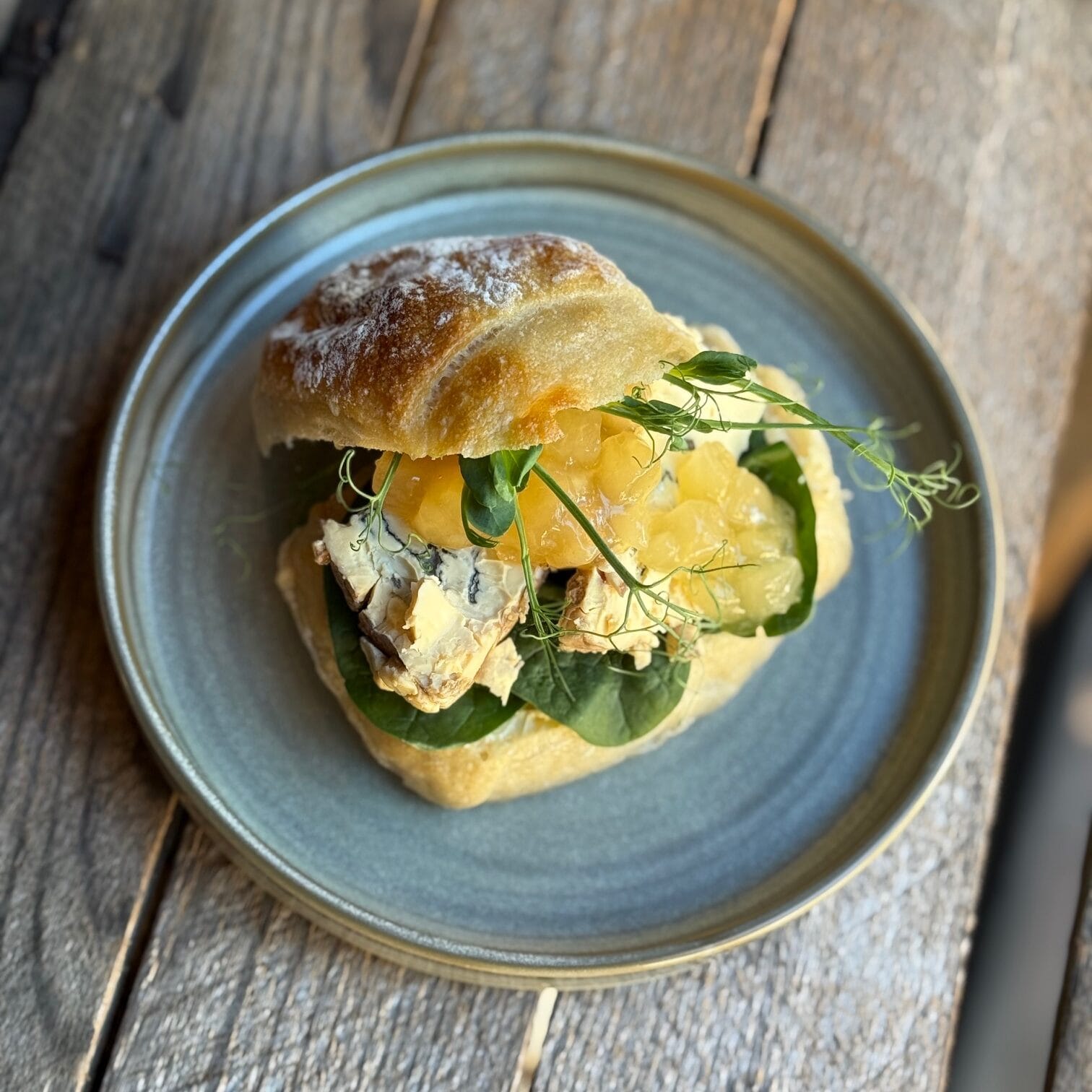 Ingredienser | Levainfralla, veg.smörgåsmargarin, sallad, delikatessost från Lilla Skafferiet, päronkompott & grönt